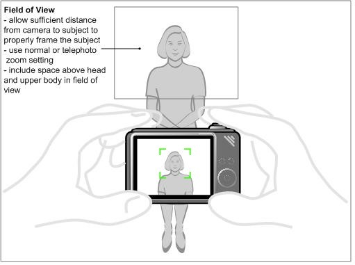 Keep your head raised and level. Look directly at the camera. Do not tilt or rotate your head.